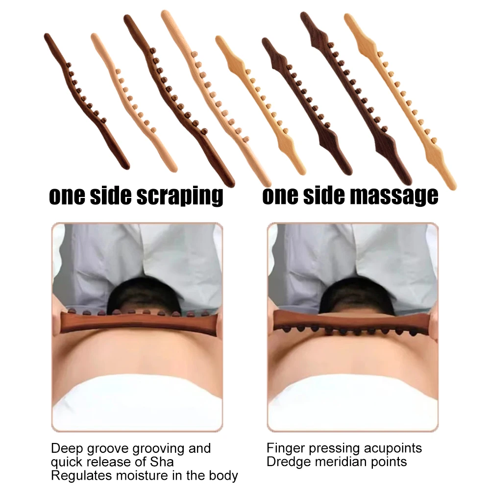 1) For the back:First use the concave surface from top to bottom, each time in the same direction. Then use the convex surface to scrape the spine.