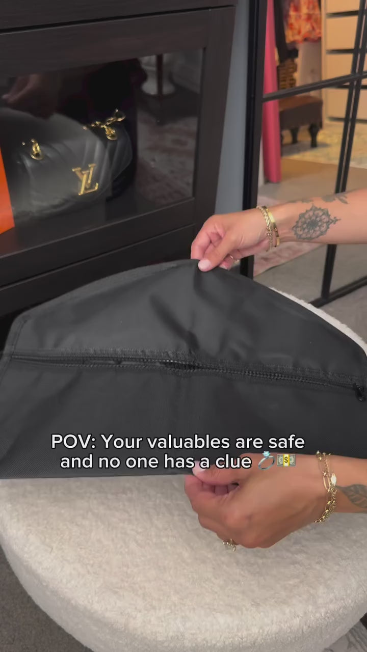 This innovative safe bag looks just like a regular hanger bag, but itβs actually aΒ discreet safeΒ to keep your valuables hidden from view. Nobody will ever suspect it!